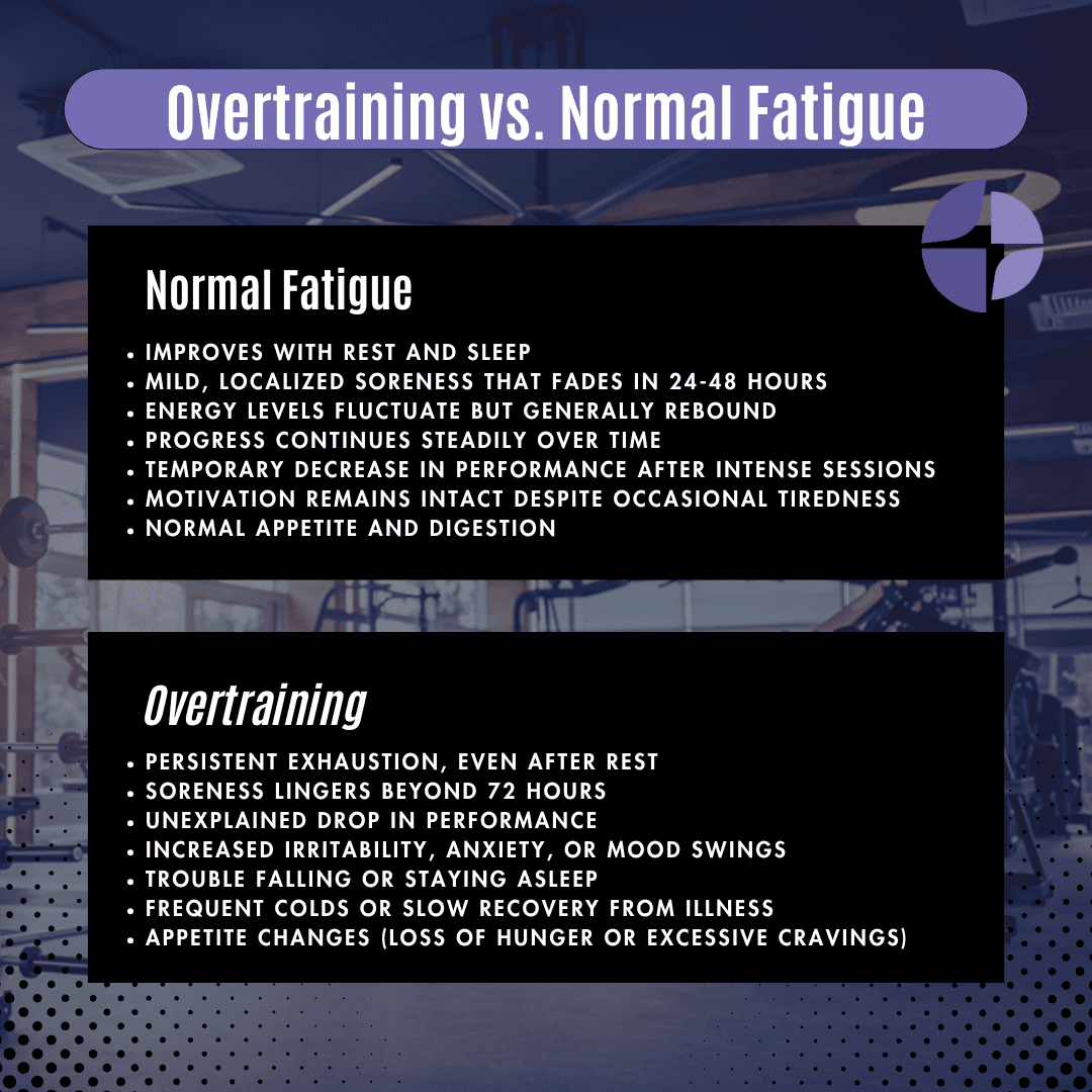 Trainers have to differentiate between normal training fatigue and true overtraining syndrome (OTS). While temporary fatigue is a natural part of the training process that leads to adaptation and improvement, OTS represents a serious physiological breakdown that can derail a client’s progress and health.