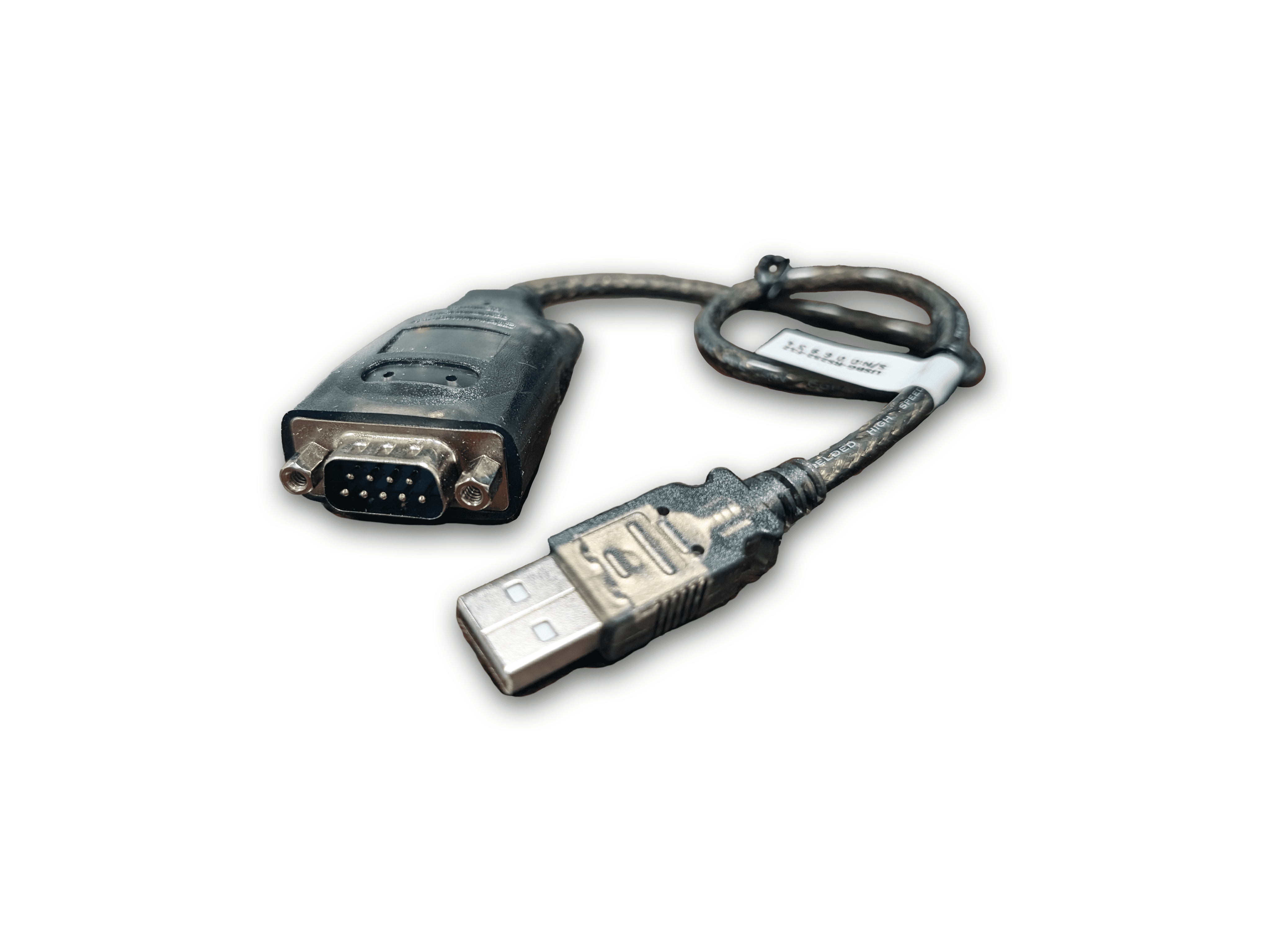 Serial port adapter with cable. Driver available at KORR.com/Service/Product-Updates .